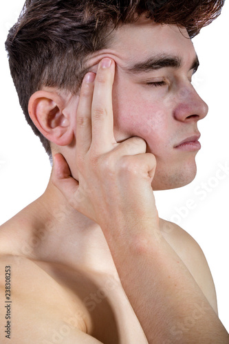 Fototapeta premium Fit shirtless young adult with pain