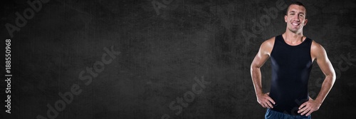 © vectorfusionart, Obraz premium Fit strong Man with dark background