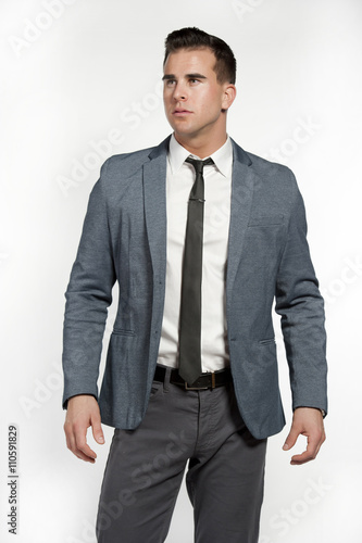 Fototapeta premium Fit White Lifestyle Male Model In Fashionable Suit