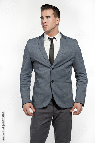 Fototapeta premium Fit White Lifestyle Male Model In Fashionable Suit