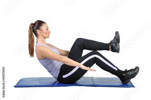 © cirkoglu, Fototapeta premium Fit young female pilates instructor showing different exercises