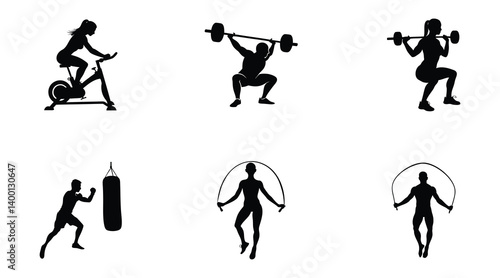 Obraz premium Fitness and Strength: Dynamic Silhouettes of Workout Activities