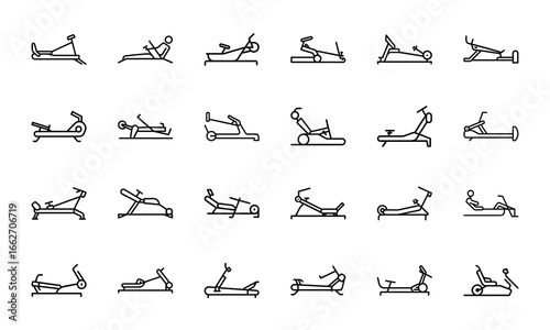 © MDTANVIR, Naklejka premium Fitness and Workout Line Icons Set Exercise, Gym Training, Weightlifting, Yoga, Martial Arts, Boxing, Running, Swimming, Sports and Healthy Lifestyle Vector Illustrations