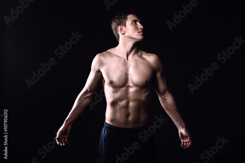 Fototapeta premium Fitness boy on black background