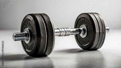 © Александр Ковалёв, Naklejka premium Fitness club banner concept with metal dumbbell