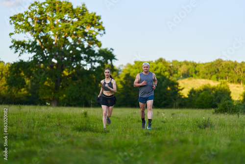 © Xalanx, Obraz premium Fitness couple jogging in the forest