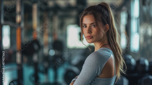 Fototapeta premium Fitness enthusiast in a gym, copy space