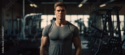Naklejka premium Fitness enthusiast lifting weights in a modern gym setting
