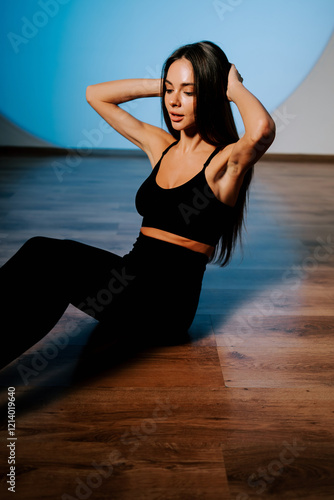 © Darius, Fototapeta premium Fitness enthusiast practicing core exercises in a well-lit studio during a fitness session