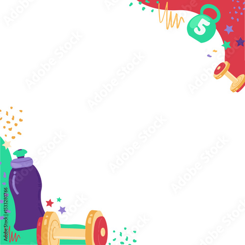Obraz premium Fitness frame is showing weights and bottle in flat style with transparent...
