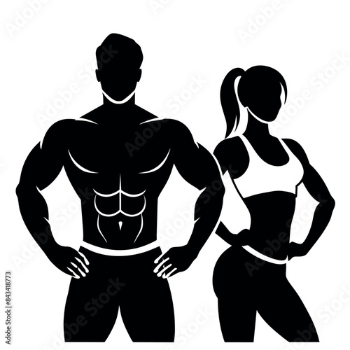 © Dream Is Power, Fototapeta premium fitness gym couple man and woman close to each other vector silhouette