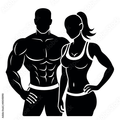 © Dream Is Power, Fototapeta premium fitness gym couple man and woman close to each other vector silhouette