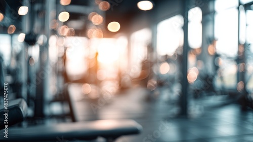 © Jane Kelly, Fototapeta premium Fitness gym with exercise equipment silhouettes and dynamic lighting