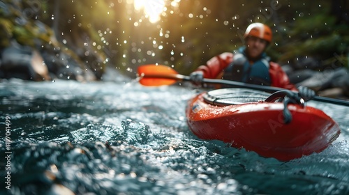Naklejka premium Fitness in Motion: Kayaking for Strength and Agility on a Rapid River