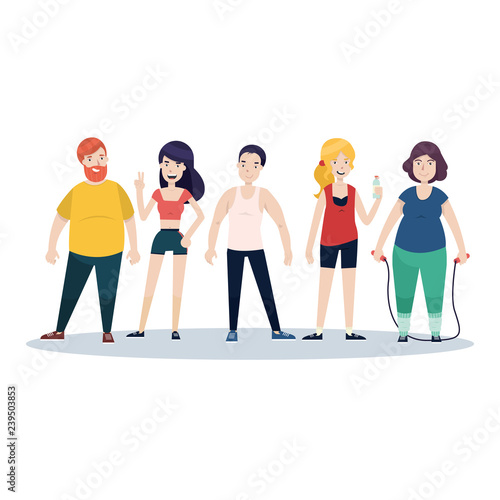 Fototapeta premium Fitness man and woman character set. vector illustration