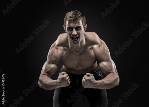 Fototapeta premium Fitness man model torso posing and showing perfect body