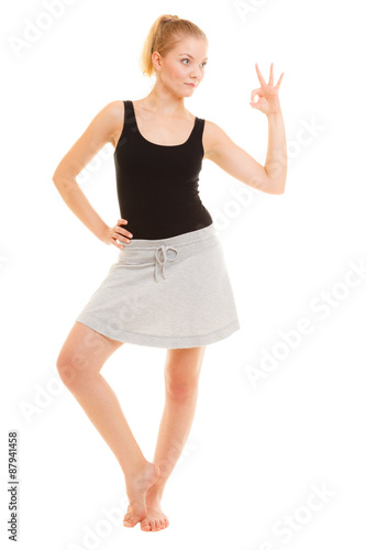 Fototapeta premium Fitness sporty girl showing ok okay hand sign gesture