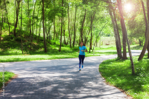 Fototapeta premium Fitness sporty woman jogger running at outdoors jogging track in park