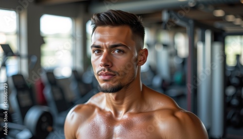 Fototapeta premium Fitness training action gym location portrait content indoor environment...