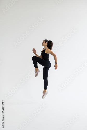 Fototapeta premium Fitness woman aerobics. Fresh energetic female fitness instructor doing aerobics.