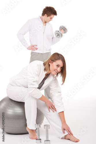 Obraz premium Fitness - Young couple training with weights and ball