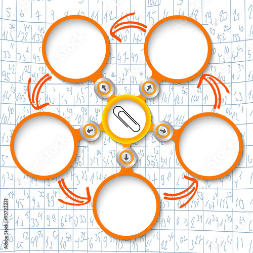 Naklejka premium Five abstract circular text boxes and paper clip