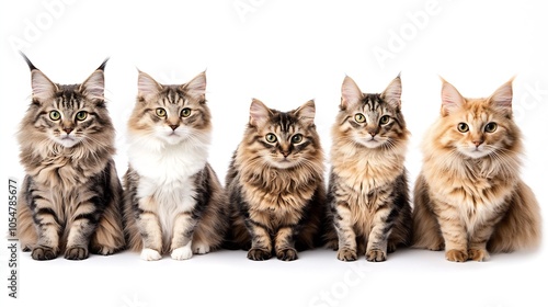 Obraz premium Five Adorable Maine Coon Kittens Sitting in a Row on a White Background : Generative AI