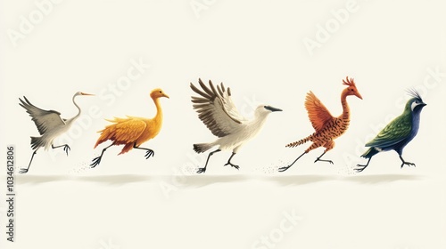 © Erna yuliyanti, Fototapeta premium Five Birds Running