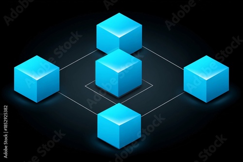 Obraz premium Five blue cubes on a dark background