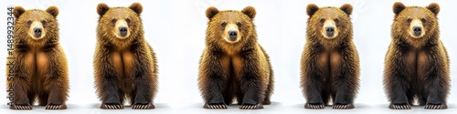 © illustration, Obraz premium Five Brown Bear Cubs on White Background Studio Shot
