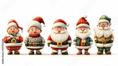Obraz premium Five Christmas Santas in a Row.