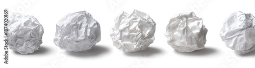 © Nurul, Fototapeta premium Five crumpled white paper balls in a row, with shadows