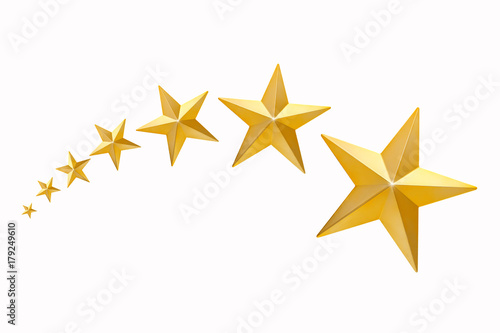 © PRASERT, Obraz premium Five Golden Christmas Star isolated on white Background. Top View Close-Up