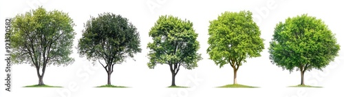 Obraz premium Five Green Trees Isolated on a White Background