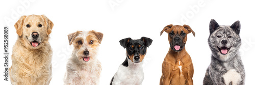 © Eric Isselée, Obraz premium Five happy dogs panting and looking at camera