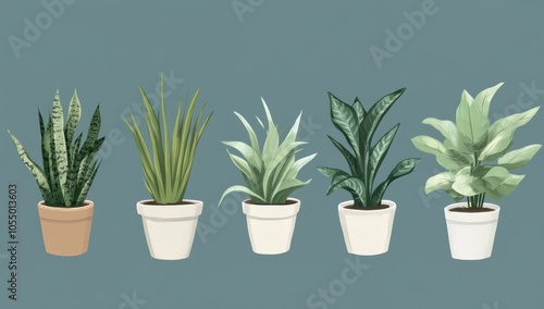 Obraz premium Five Houseplants in Pots