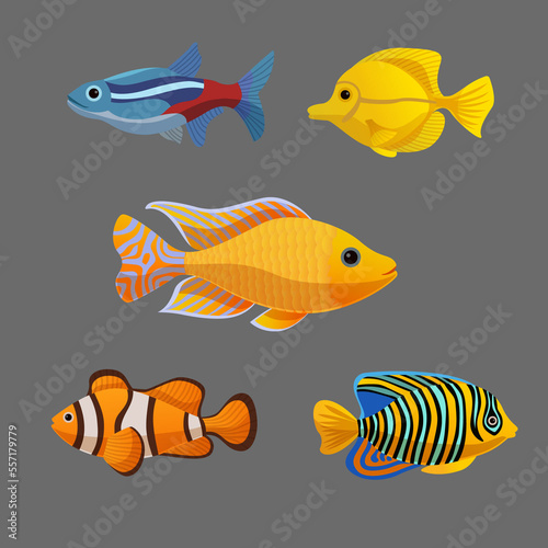© Alamin, Naklejka premium Five items are different fish illustrations.