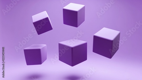 Obraz premium Five levitating purple cubes on purple background.