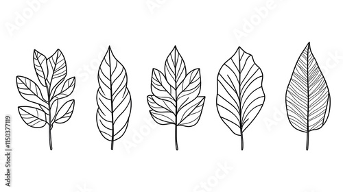 Fototapeta premium Five Line Drawings of Different Leaf Designs