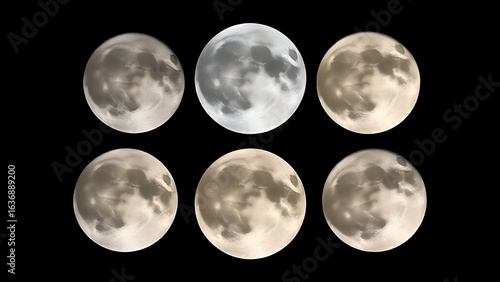© EIKOZ, Obraz premium Five moon phases each depicting a unique scientific phenomenon artistically.