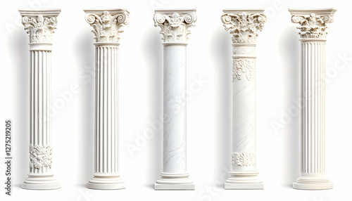 © NANDACHOIRUR, Obraz premium Five ornate columns, classical architecture, white background, design resource