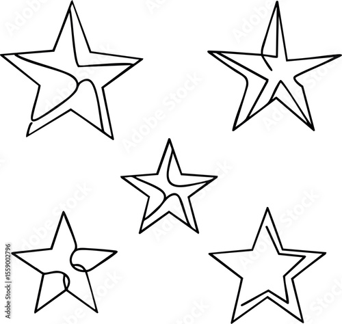 Obraz premium Five outlined stars vector shapes with inner cutouts in simple black and...