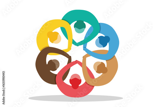 Naklejka premium Five people in a circle holding hands unity teamwork