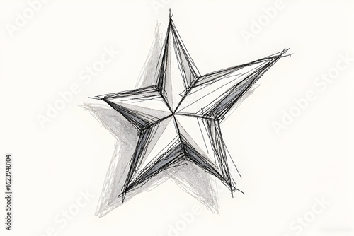 © elyf, Obraz premium Five Point Star Sketch on Paper with Shading