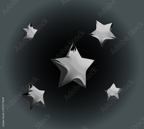 © Rafael, Obraz premium Five silver stars shining on a gray background_2
