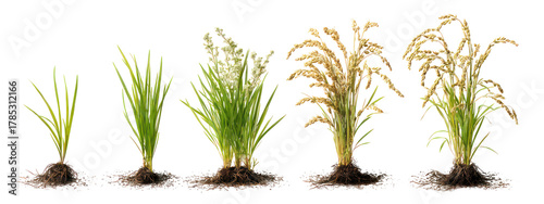 © Hasina, Naklejka premium Five stages of rice plant growth isolated on transparent background