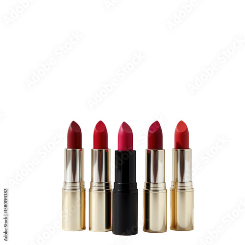 © ColorfulFlowerStudio, Obraz premium Five Vibrant Lipsticks on a Transparent background for Beauty Showcase