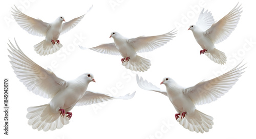 © MD REAJUL, Fototapeta premium Five white doves in flight