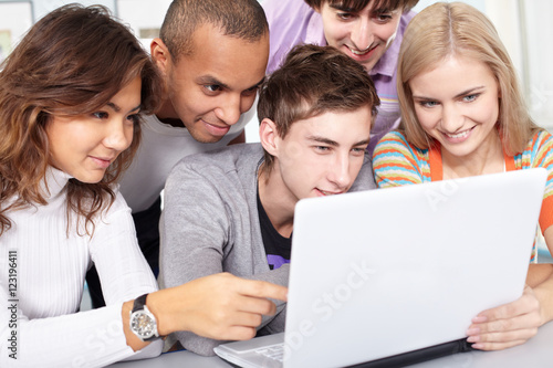 © pressmaster, Fototapeta premium Five young people are absorbed in computer