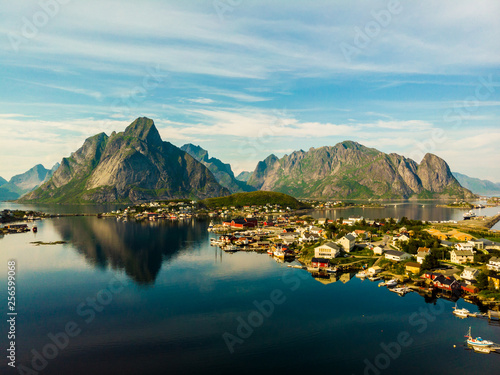 Naklejka premium Fjord and mountains landscape. Lofoten islands Norway